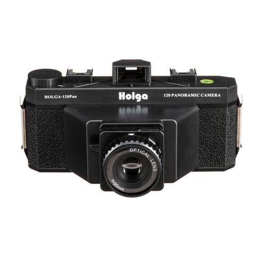 De panoramaversie van de Holga 120N, een analoge rolfilmcamera met een flitsschoen voor een standaard flitser met middencontact, produceert dromerige, unieke beelden. Hij heeft een negatiefformaat van 6x12 cm, een 90 mm lens, een diafragma van f/2 en een vaste focus.