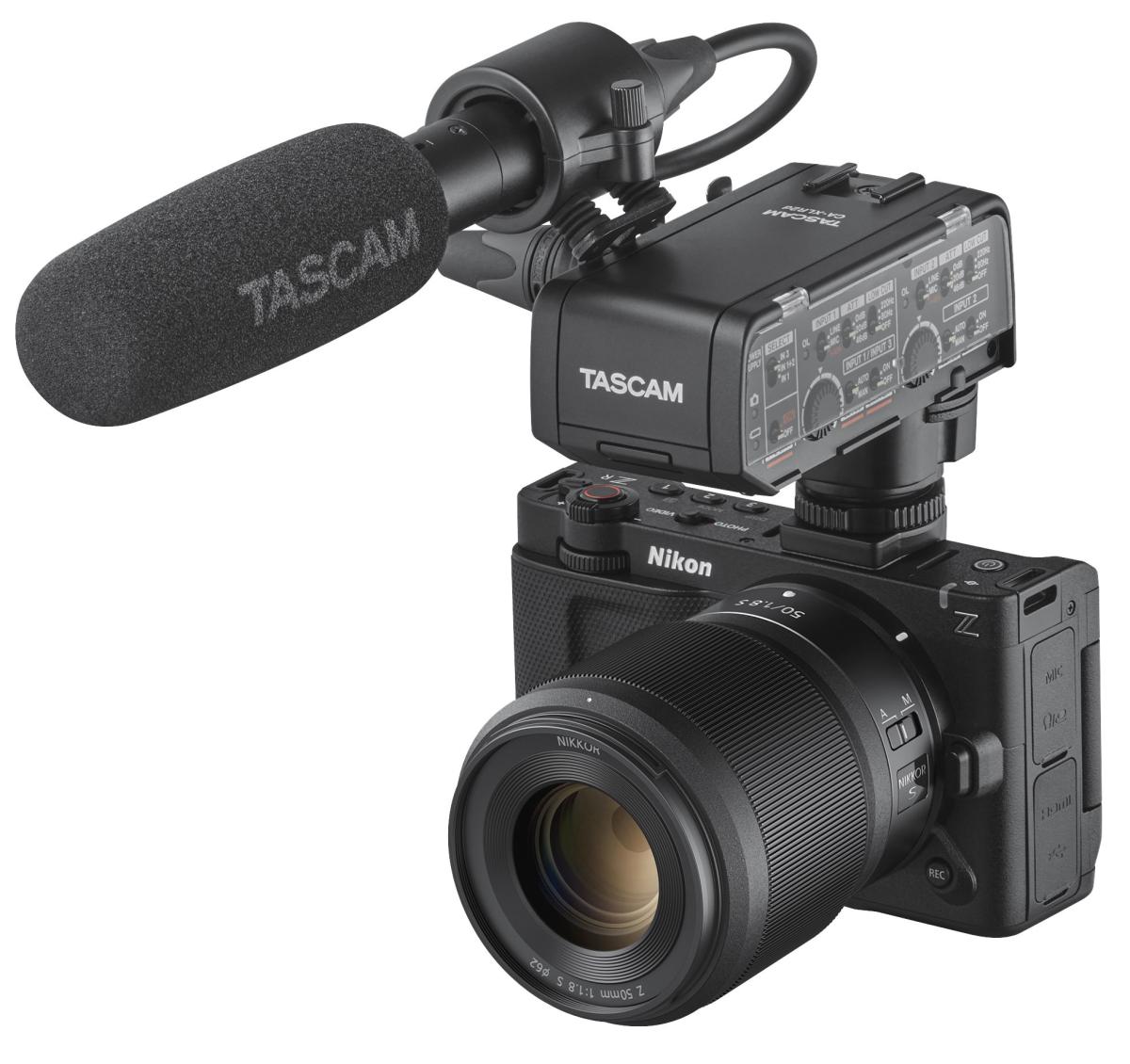 In samenwerking met Nikon Corporation introduceert Tascam de Nikon Kit "CA-XLR2d-N", een nieuwe toevoeging aan Tascams assortiment XLR-microfoonadapters voor systeemcamera's. De kit maakt digitale audiooverdracht mogelijk via de accessoirehouder van de Nikon ZR-systeemcamera.